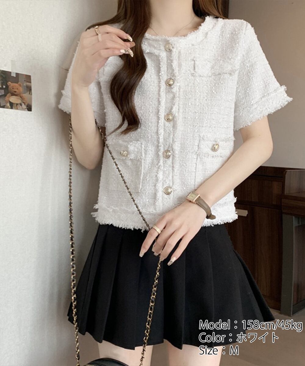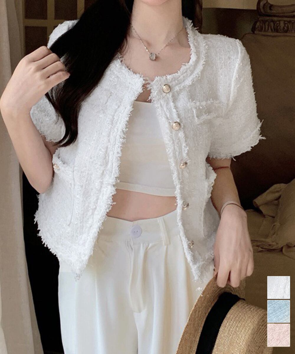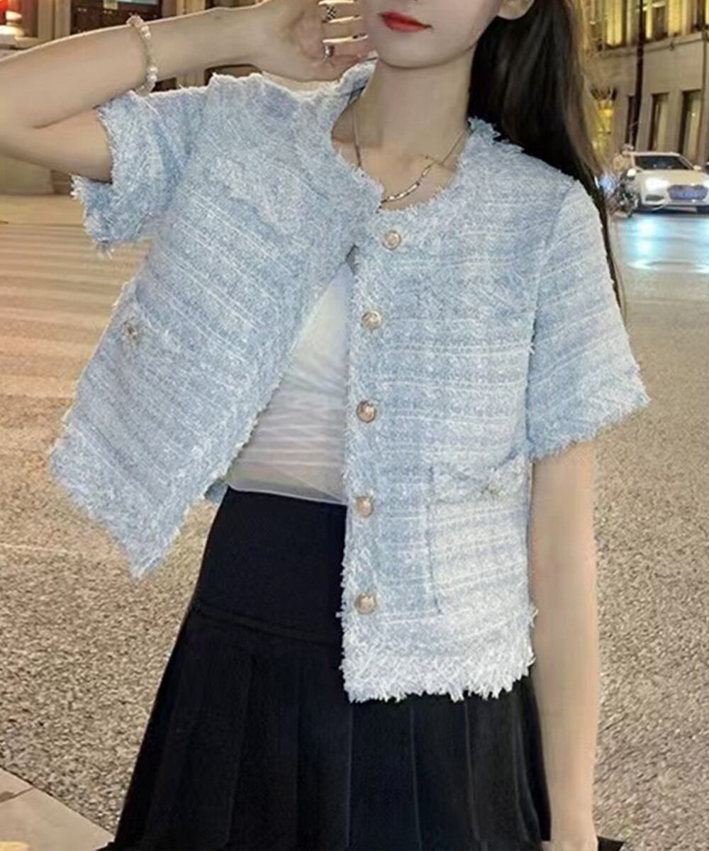 【国内倉庫(関東地区)発送[通常発送]】半袖 ツイード調 ジャケット レディース 夏服
