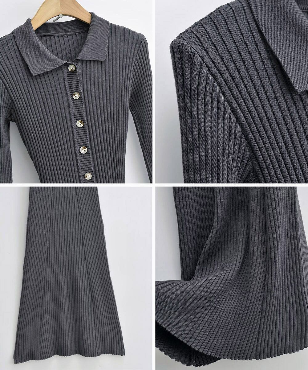 上品で女性らしい印象を与える襟付きリブ編みニットワンピースです!