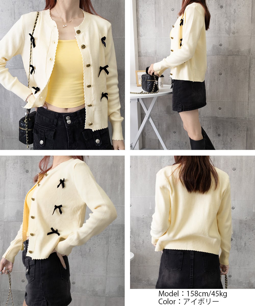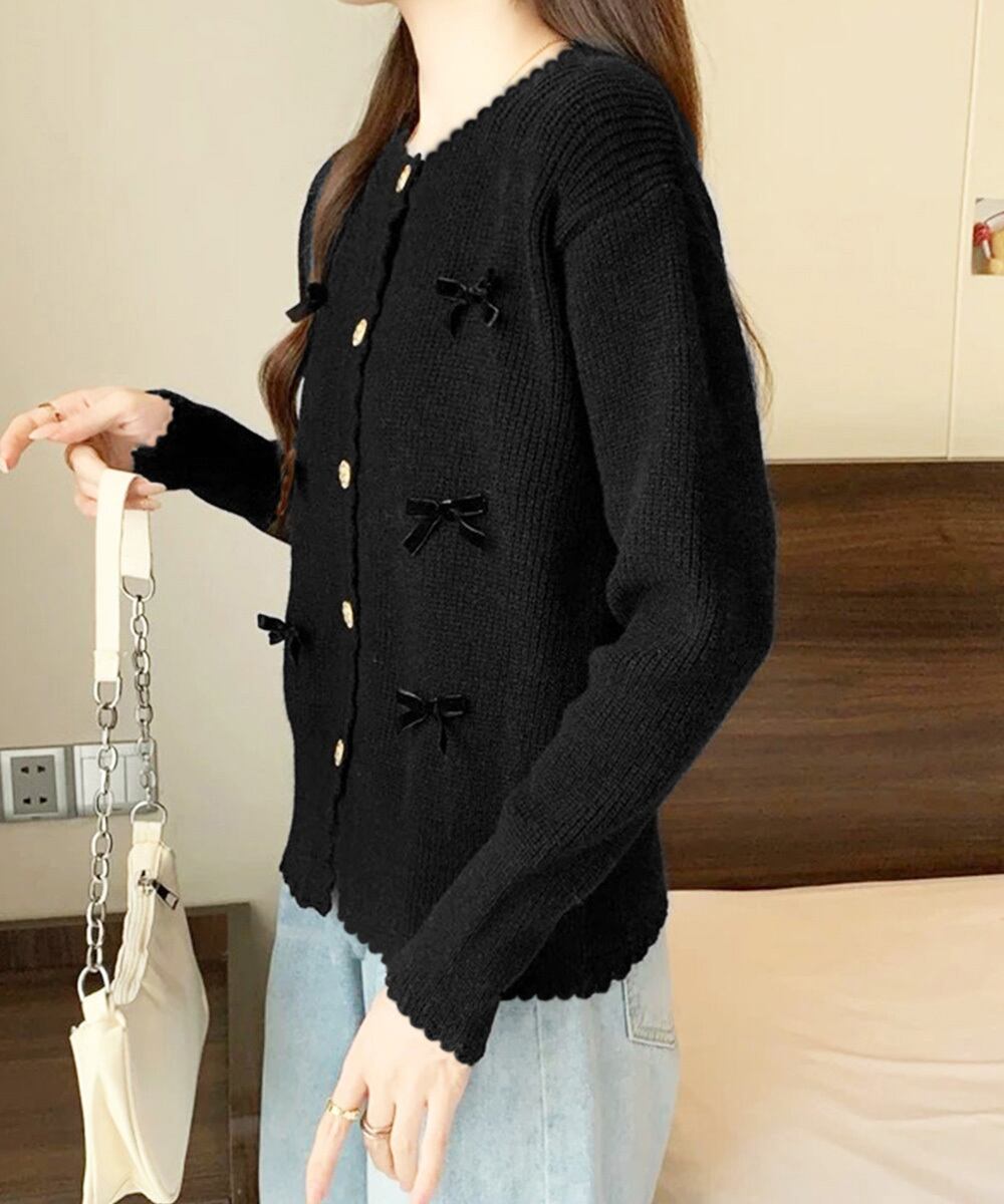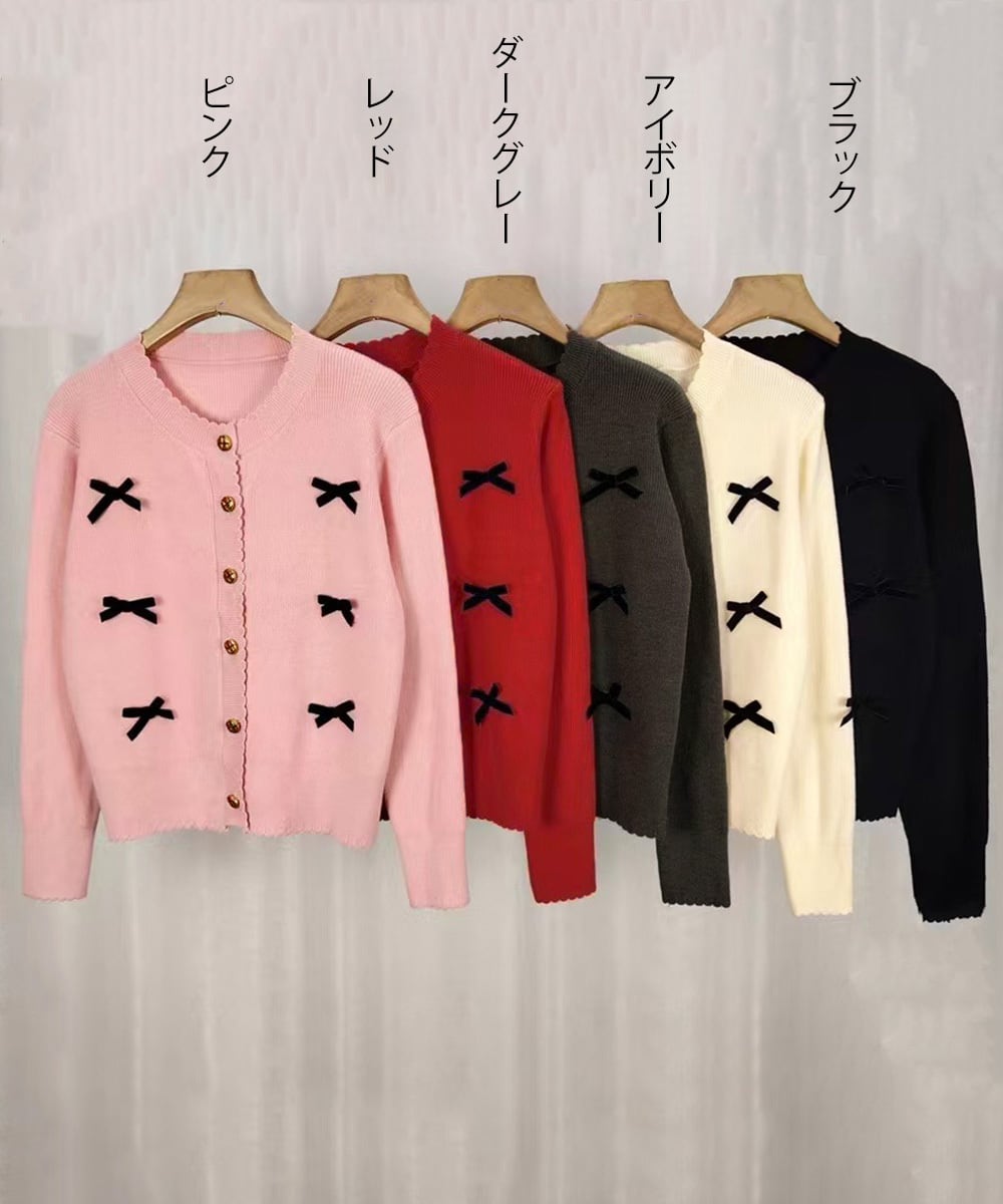 上品で女性らしさが際立つ、リボン飾りのニットカーディガン!