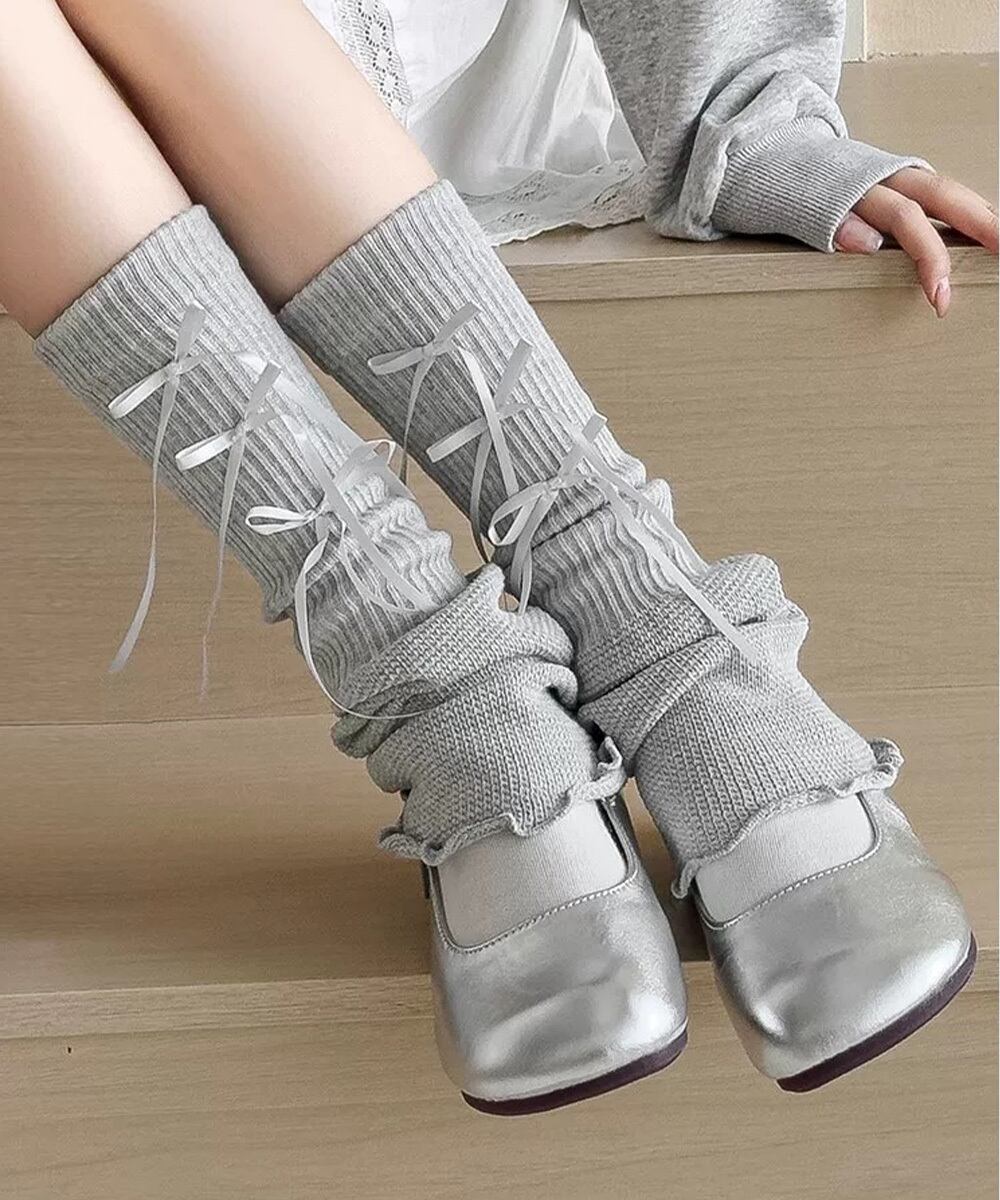 キュートなリボン付き裾フレアデザインが際立つレッグウォーマーです!