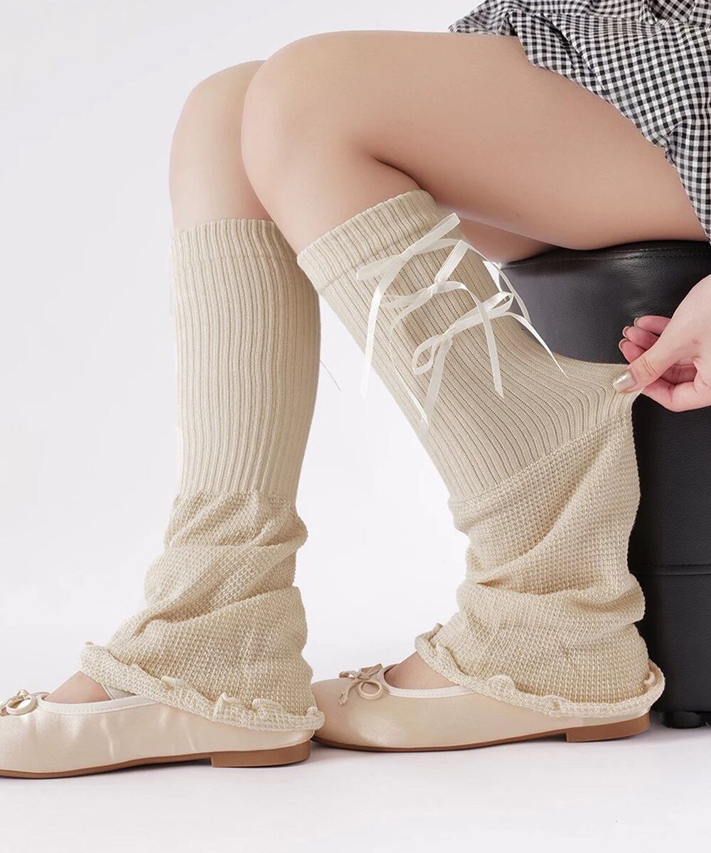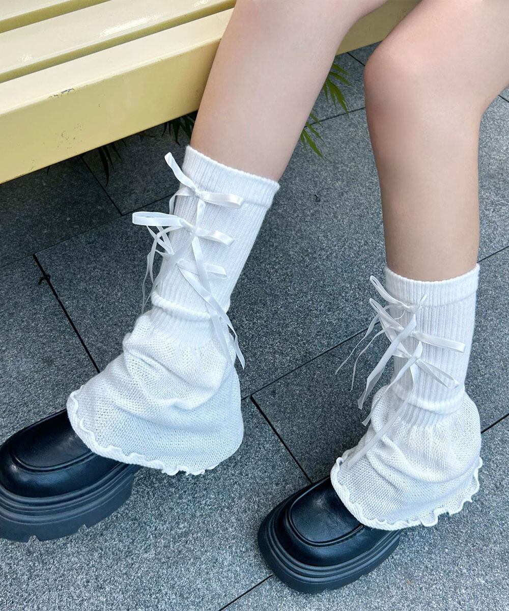 【国内倉庫(関東地区)発送[通常発送]】【メール便〇】レッグウォーマー リボン付き レッグカバー