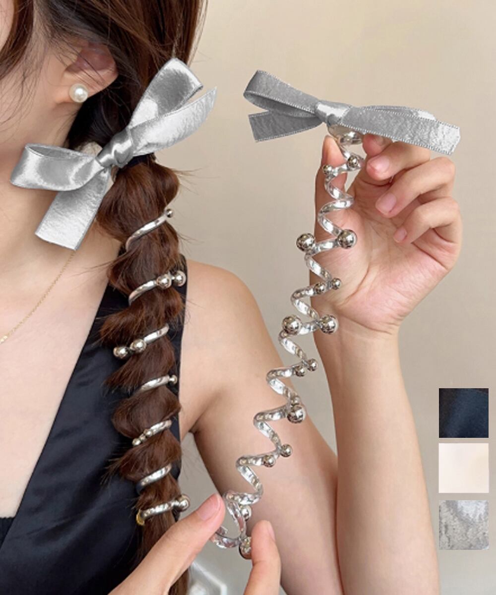 髪にくるくる巻き付けるだけで、ポニーテールや三つ編みをぐっと印象的に演出します。