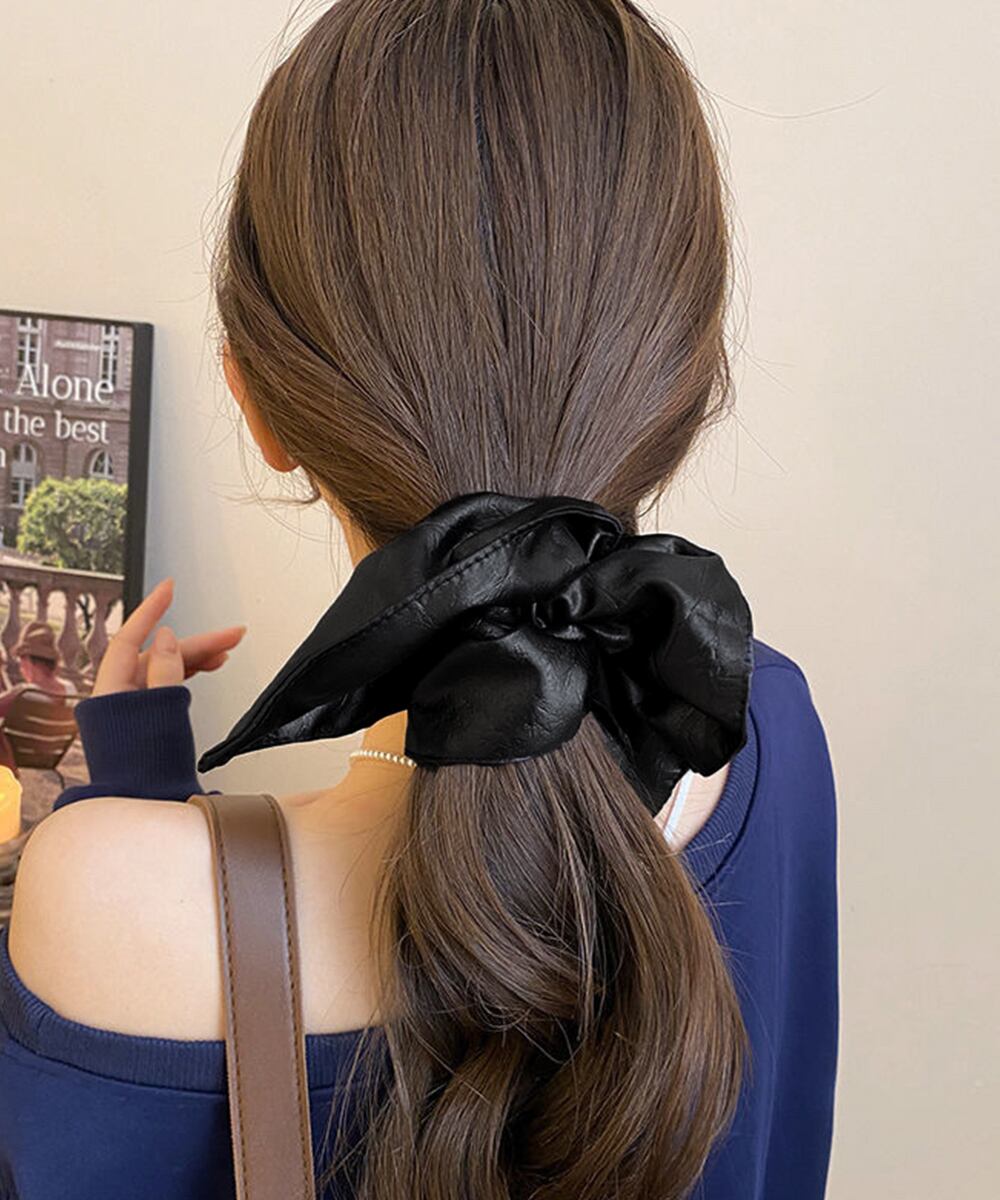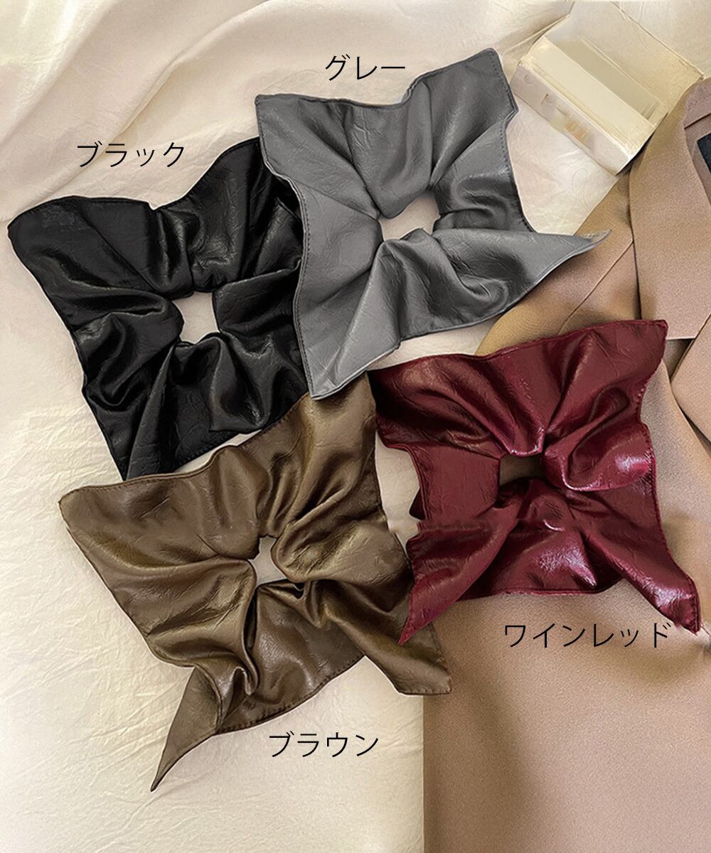 【国内倉庫(関東地区)発送[通常発送]】【メール便〇】フェイクレザー シュシュ レトロ感 ヘアゴム