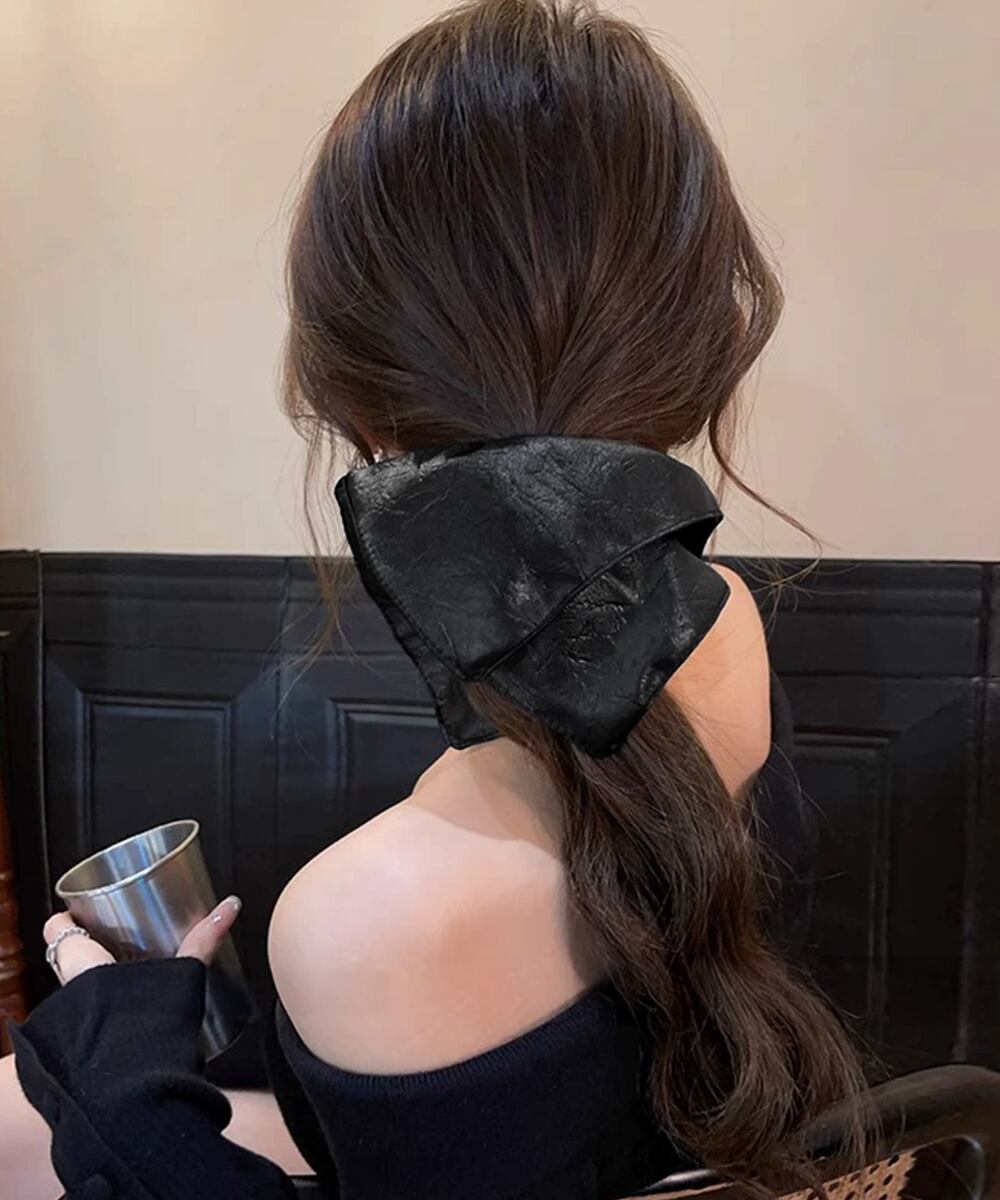 ヘアアクセサリー マット質感 韓国ファッション風 ヘアアレンジ 大人可愛い感 髪飾り 高級感 ポニーテール まとめ髪グッズ 跡つかない感 髪ファッション小物 スクエア型 シュシュ ボリューム感
