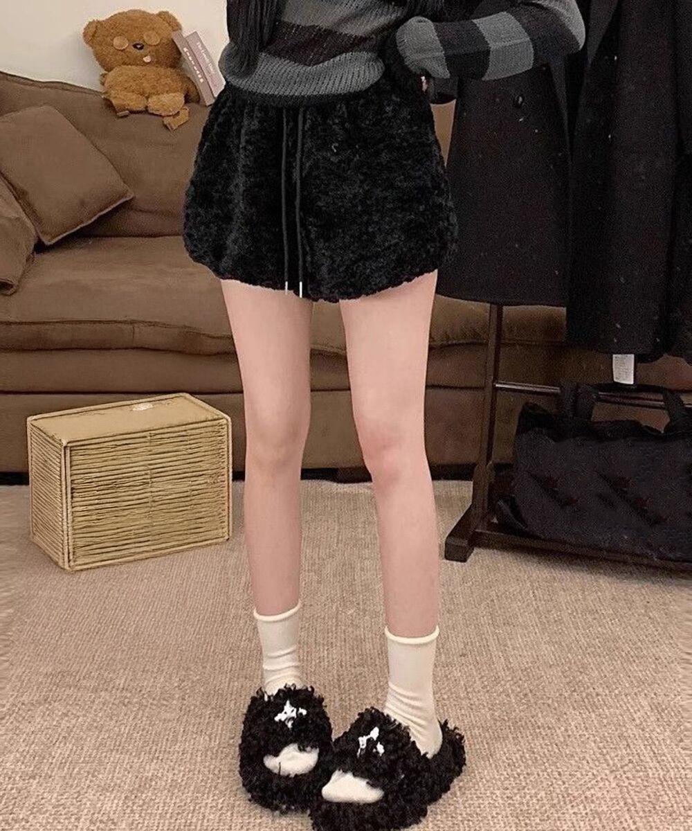 もこもこ感たっぷりのボアショートパンツは、暖かくて軽やかな着心地が特徴です。
