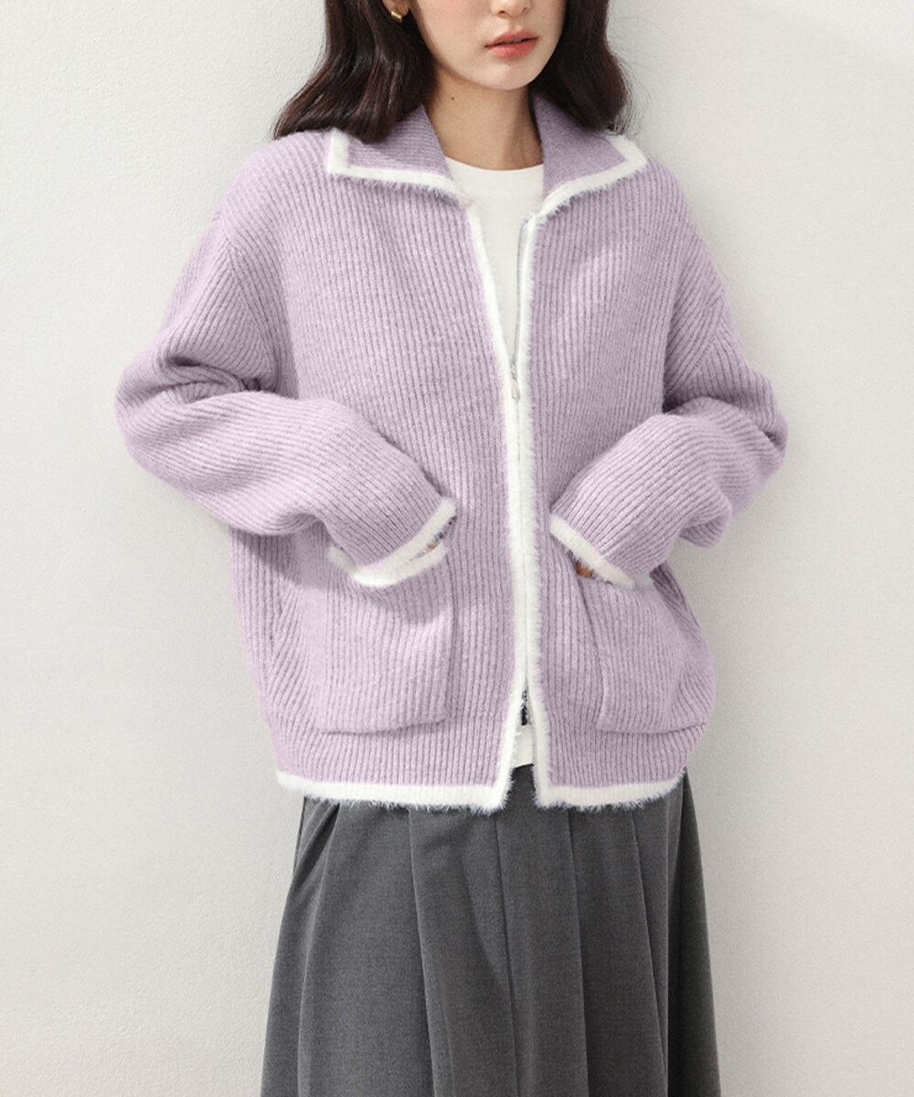 長袖 ニット ニットアウター ニット トップス セーター 前開き ゆったり感 羽織り 体型カバー 無地 ふわふわ感 暖か感 ニットジャケット オフィスカジュアル 韓国ファッション風