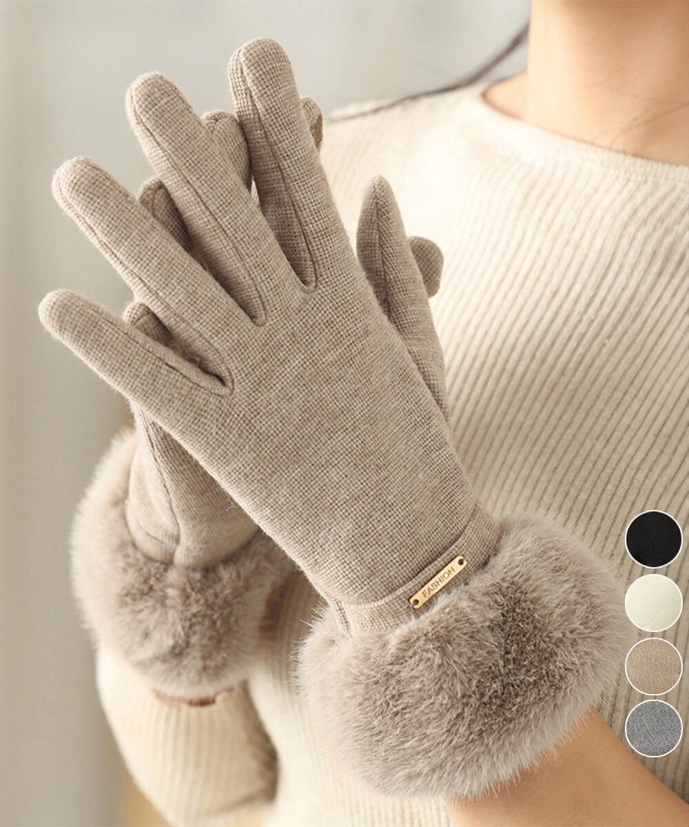 【国内倉庫(関東地区)発送[通常発送]】【メール便〇】裏起毛 エコファー 手袋 冬 防風対策 保温感 スマホのタッチ操作対応