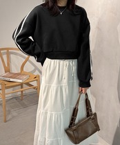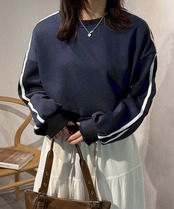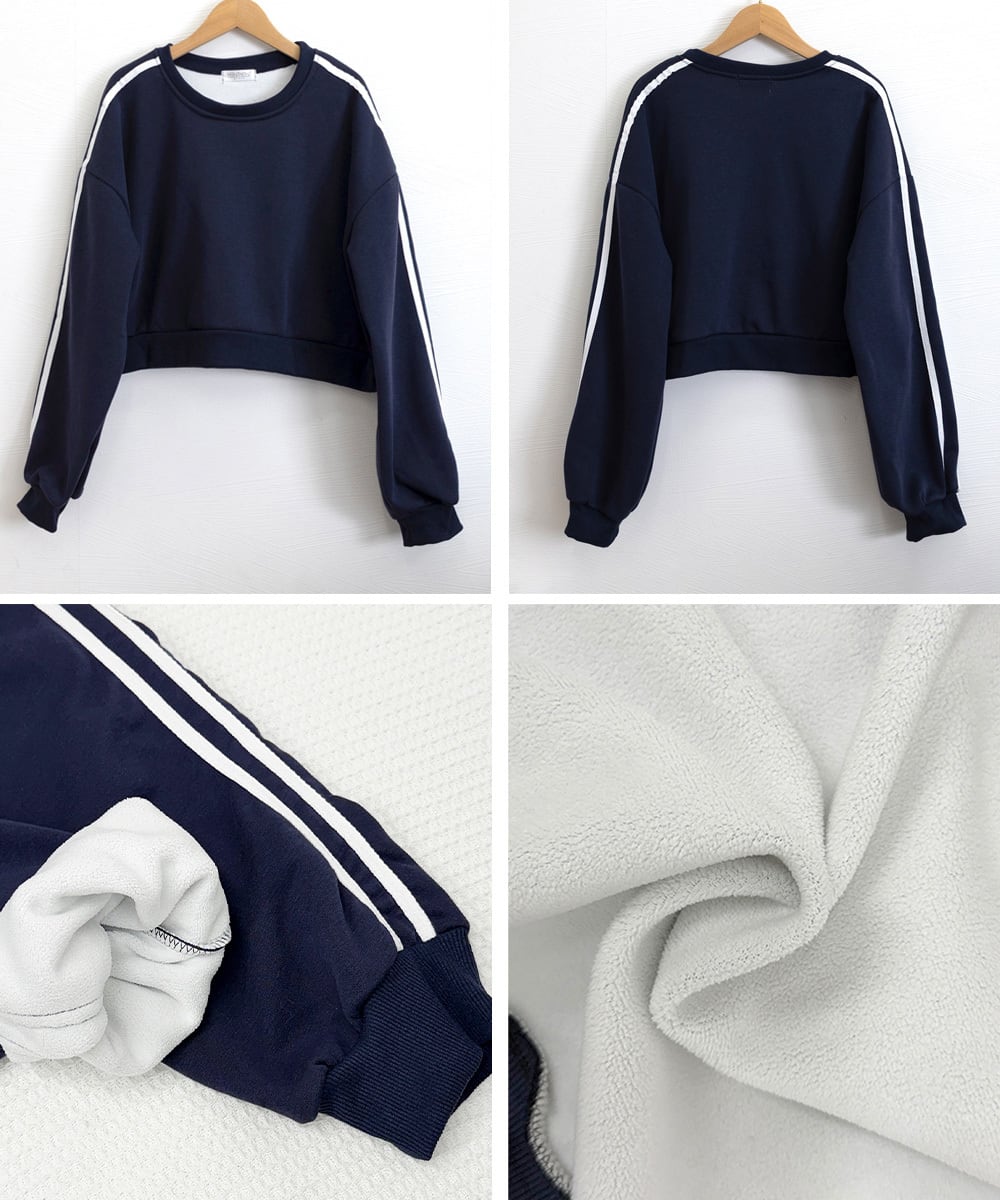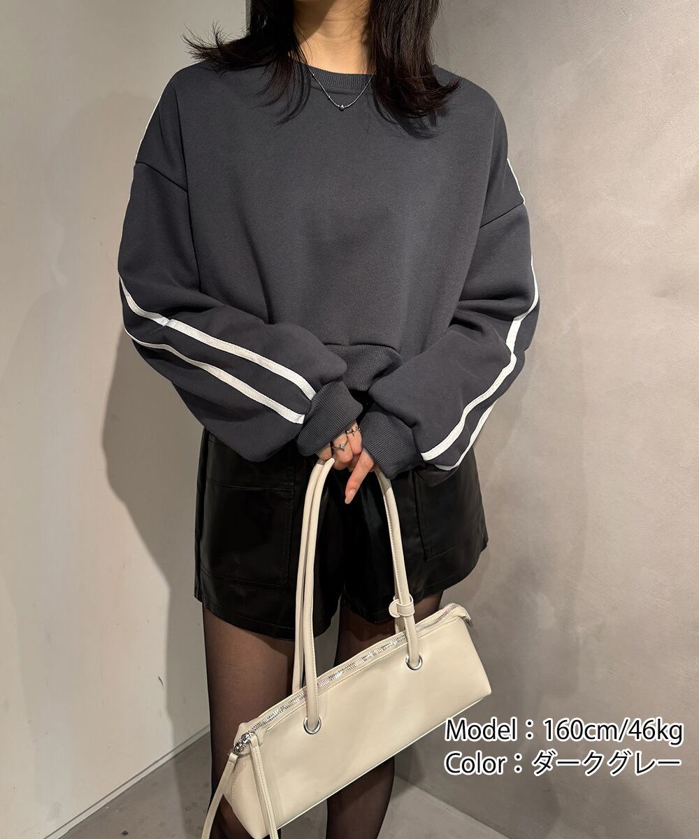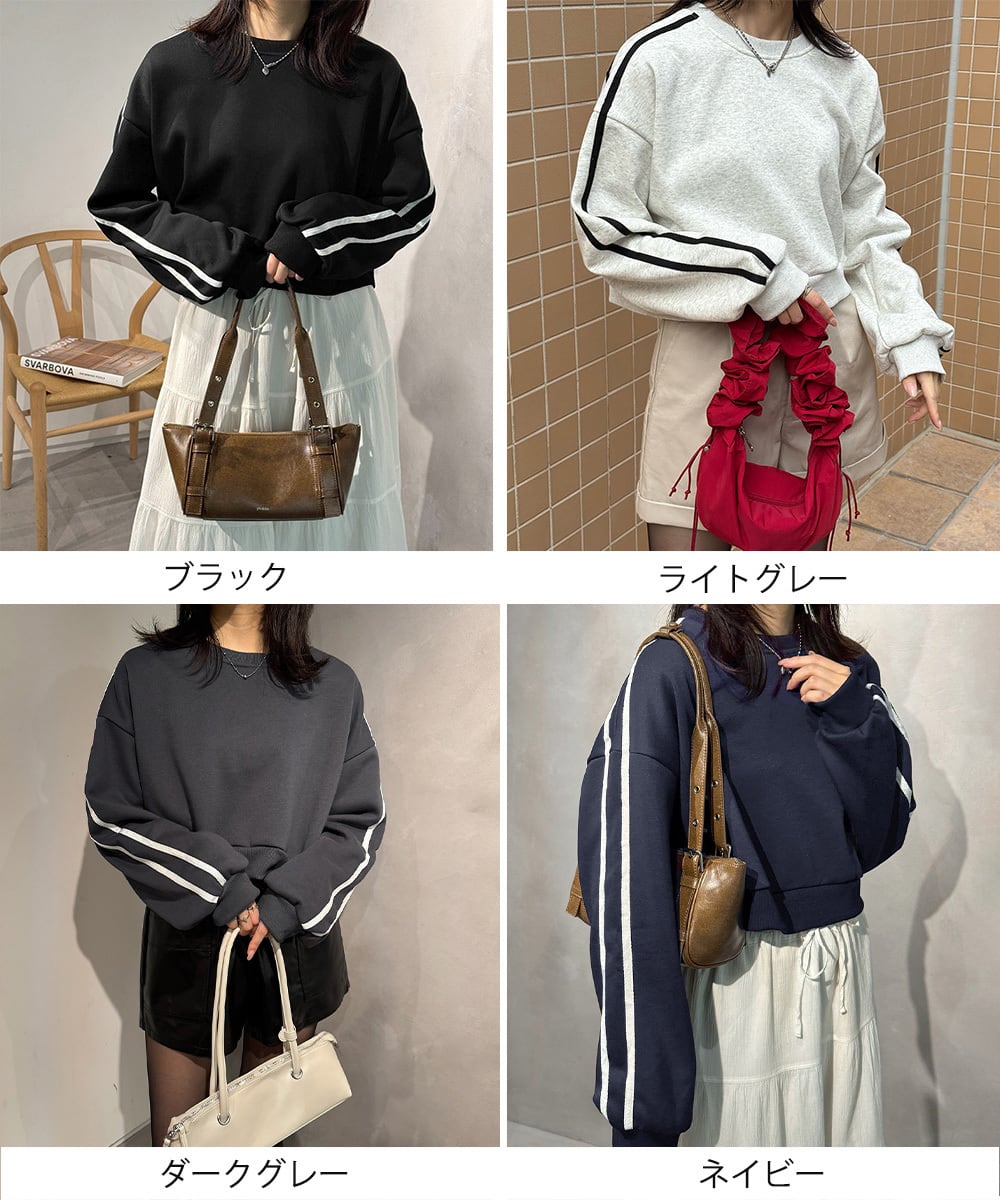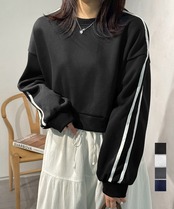 袖ライン スウェット ゆったり感 ショート丈 プルオーバー 暖かい感 体型カバー 大人カジュアル感 厚手 スポーツ トップス 20代 30代 40代 着やせ感 長袖 ダンス練習着 韓国ファッション風