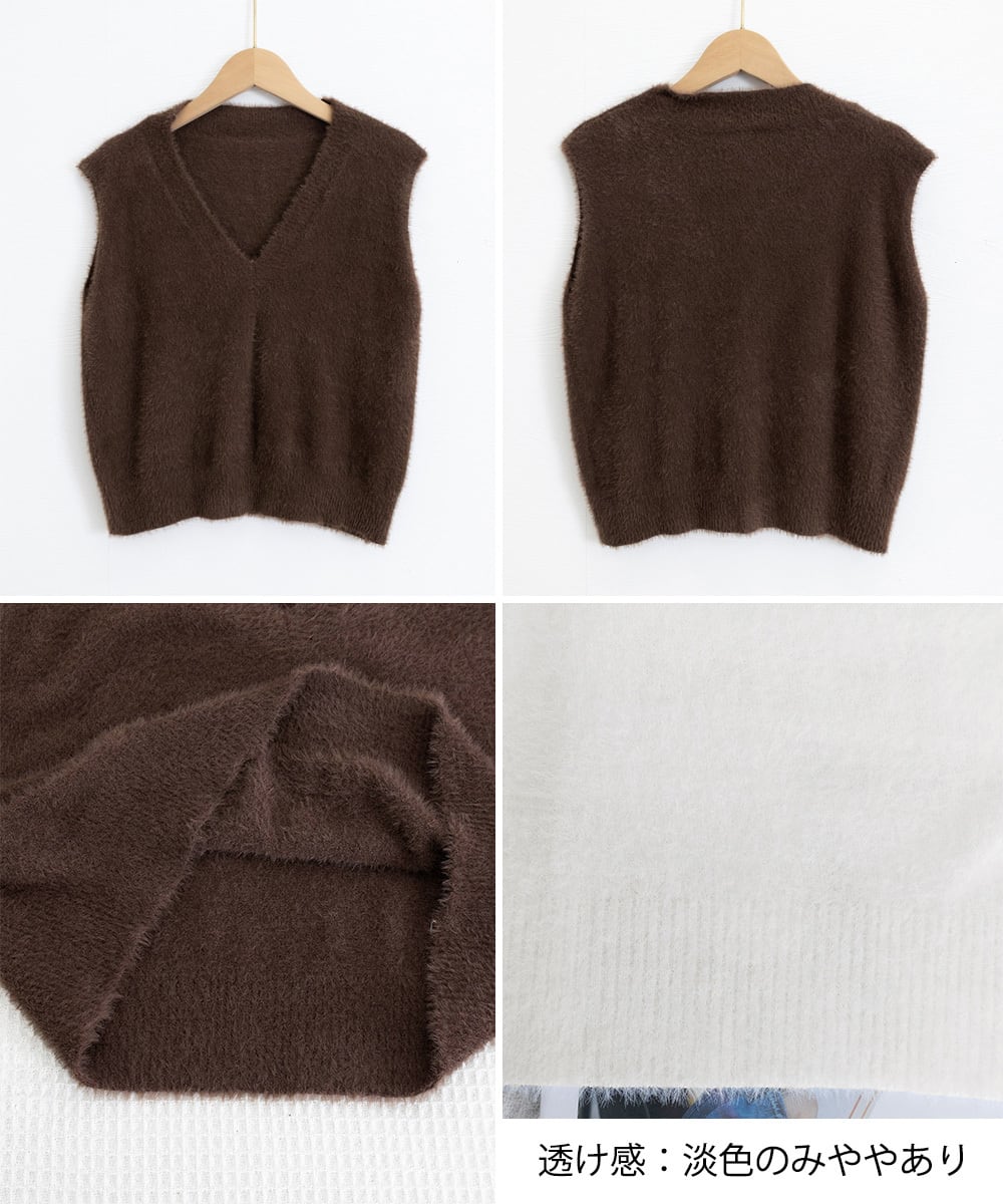 【国内倉庫(関東地区)発送[通常発送]】【メール便〇】シャギーニット ベスト ショート丈 ニット ジレ