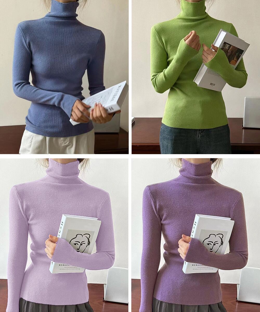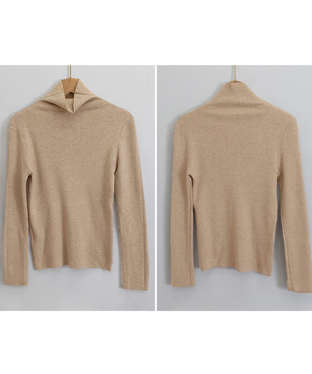 ハイネック ニット レディース 韓国ファッション風 タイトシルエット ニットソー 着やせ感 大人可愛い感 秋冬 シンプル ニットインナー あったか感 ベーシック感 着回し チクチクしない感 長袖 細身感 無地