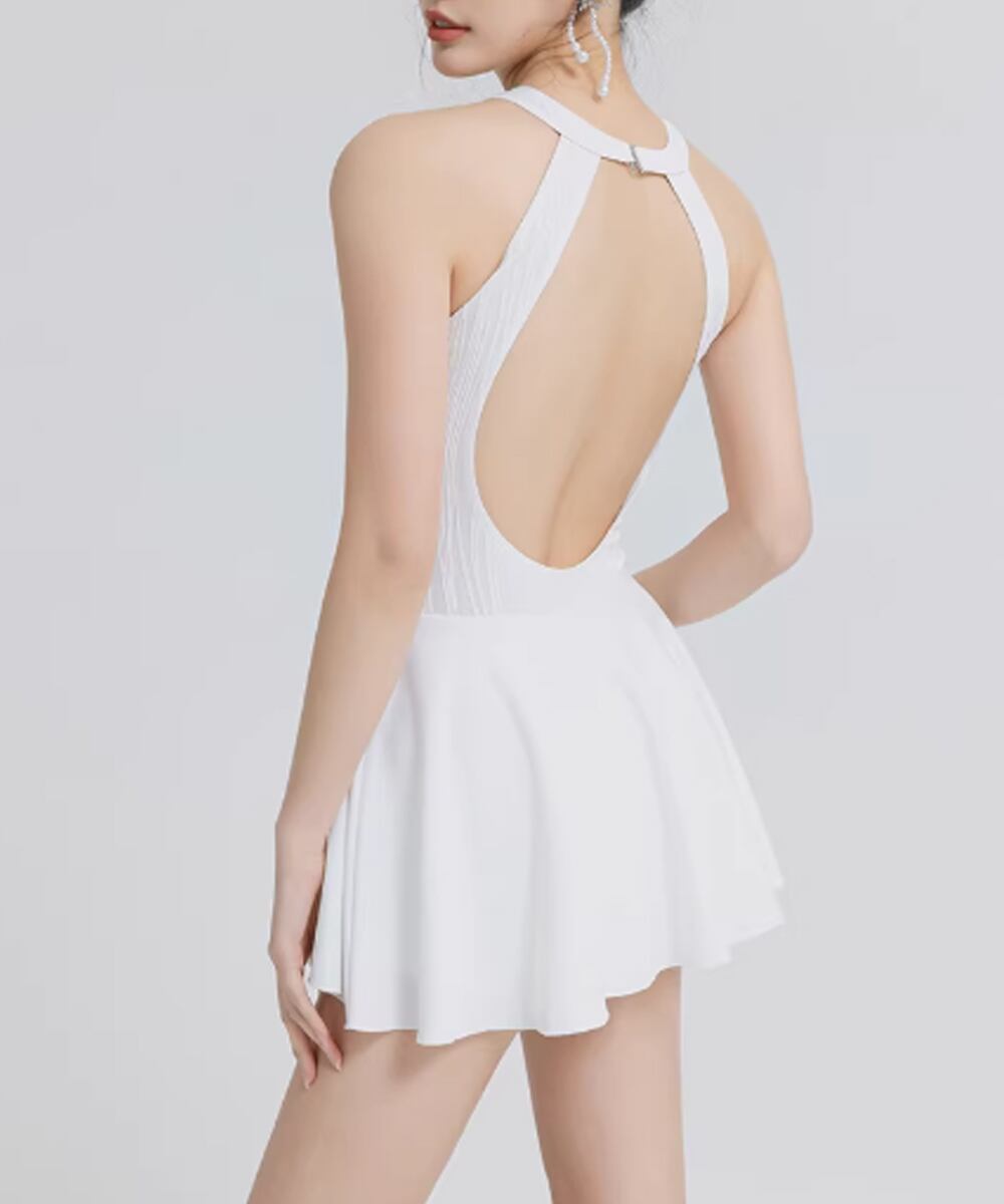 別体インナーパンツ付き 水着 2点セット レディース 大人可愛い感 スイムウェア 露出控えめ感 フレアシルエット 韓国ファッション風 ビーチウェア リゾート 夏 海 セットアップ 背中見せ感