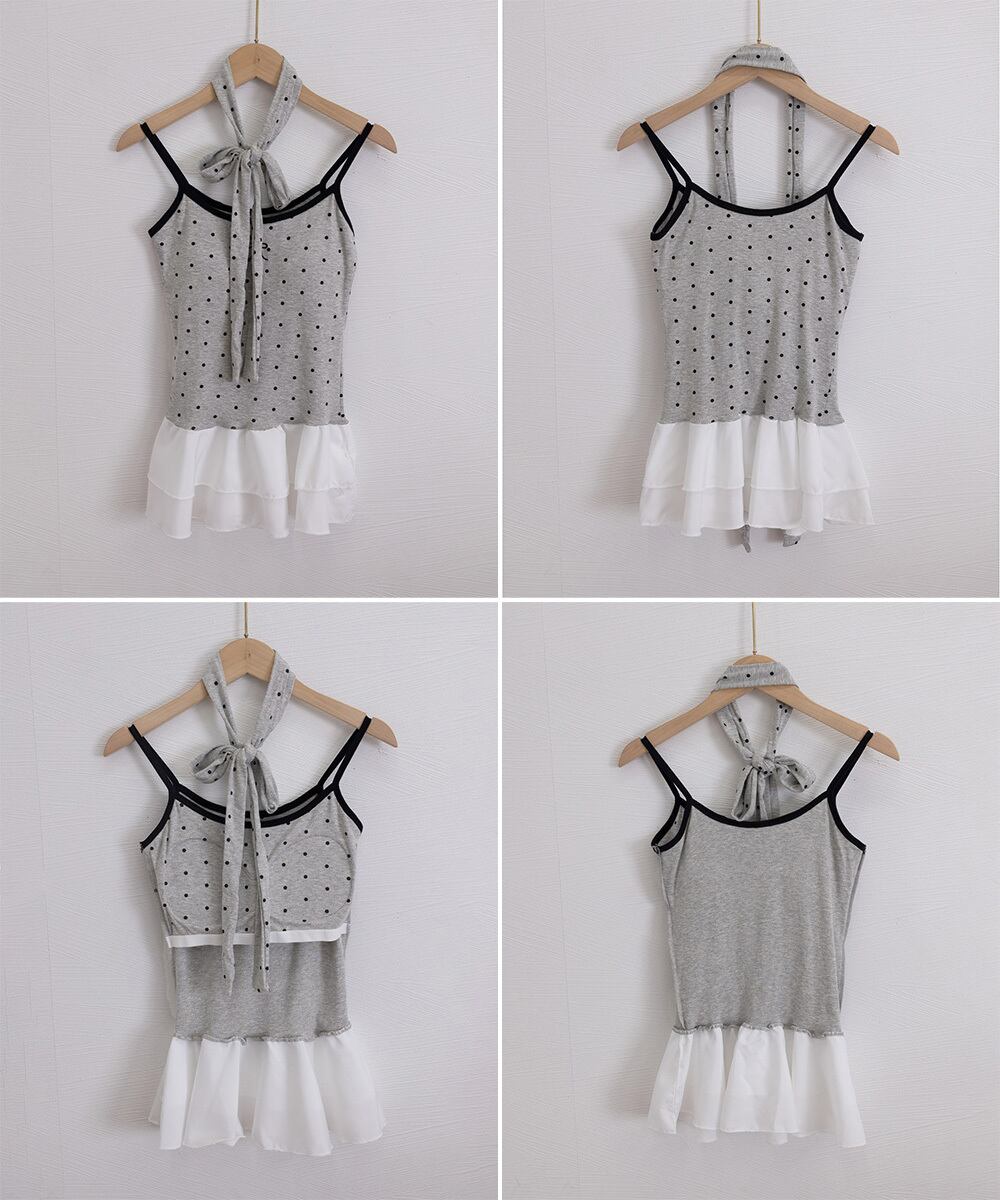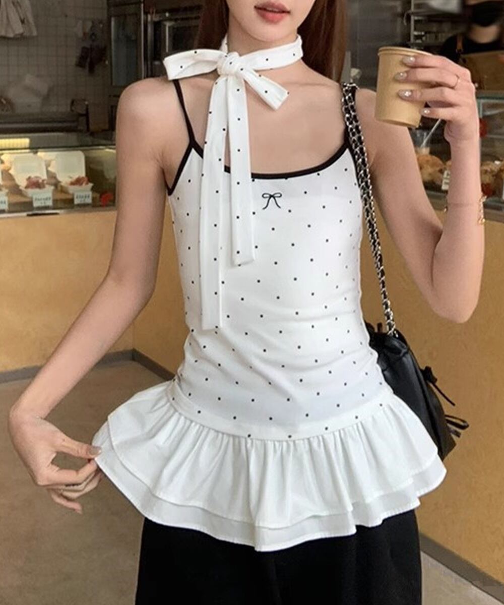 【国内倉庫(関東地区)発送[通常発送]】【メール便〇】ドット柄 キャミソール チョーカー付き 夏服
