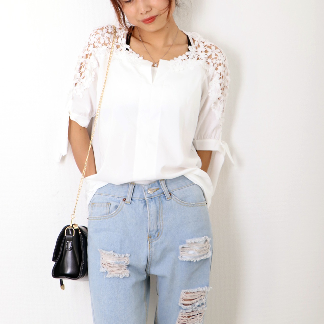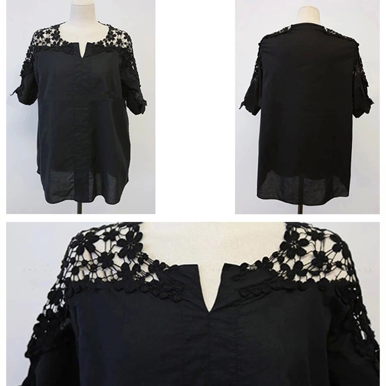 【国内倉庫(関東地区)発送[12月26日(午前6:00以降のご注文)~1月4日発送業務休業]】フラワーレース ブラウス レディース 半袖 シャツ チュニック Vネック プルオーバー ゆったり感