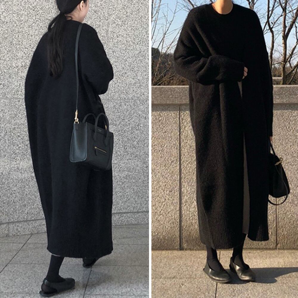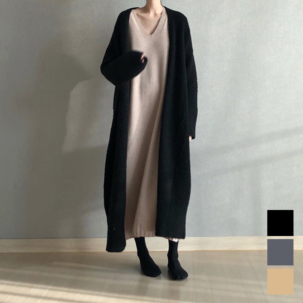 ノーカラー ニット コーディガン 無地 前開き ニットガウン 秋冬 アウター 体型カバー ロングカーデ 中厚手 オフィスカジュアル 羽織り 通勤 カーデ 韓国ファッション風 ゆったり感