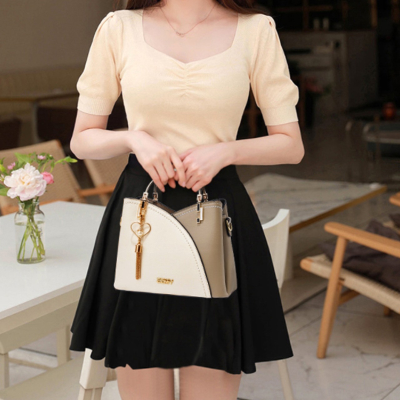 PUレザー 斜め掛け バッグ バイカラー 肩掛け かばん 大人かわいい感 通勤 ファスナー付き 手提げバッグ 結婚式 多収納 合皮 ショルダーバッグ 配色