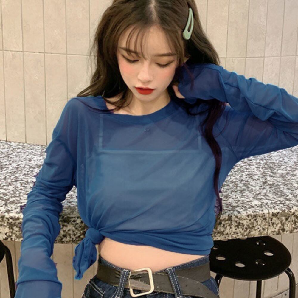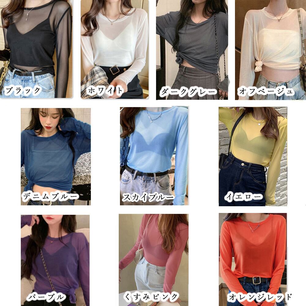 ラウンドネック ブラウス 透け感 韓国ファッション風 セクシー 春夏 トップス インナー シースルー