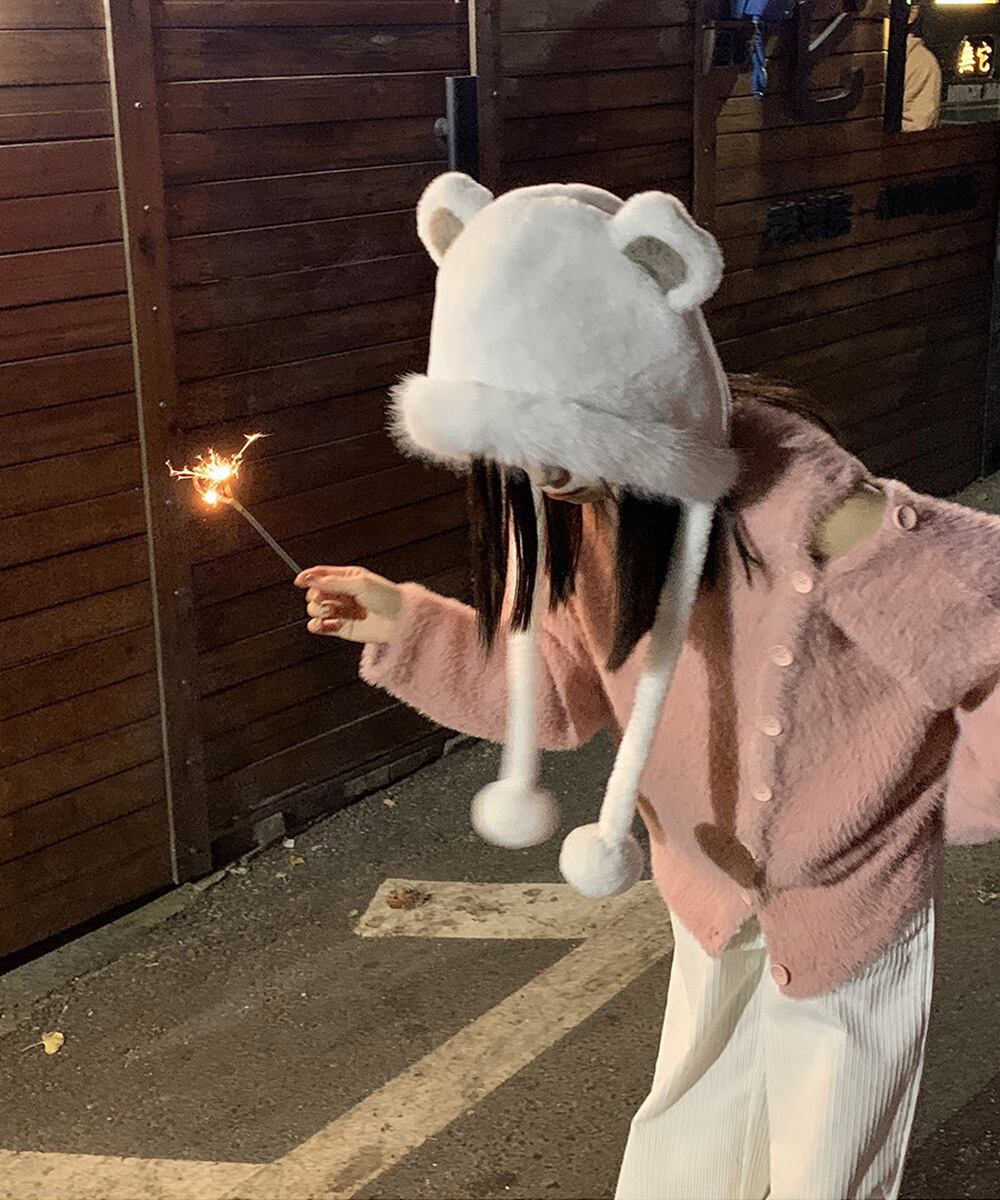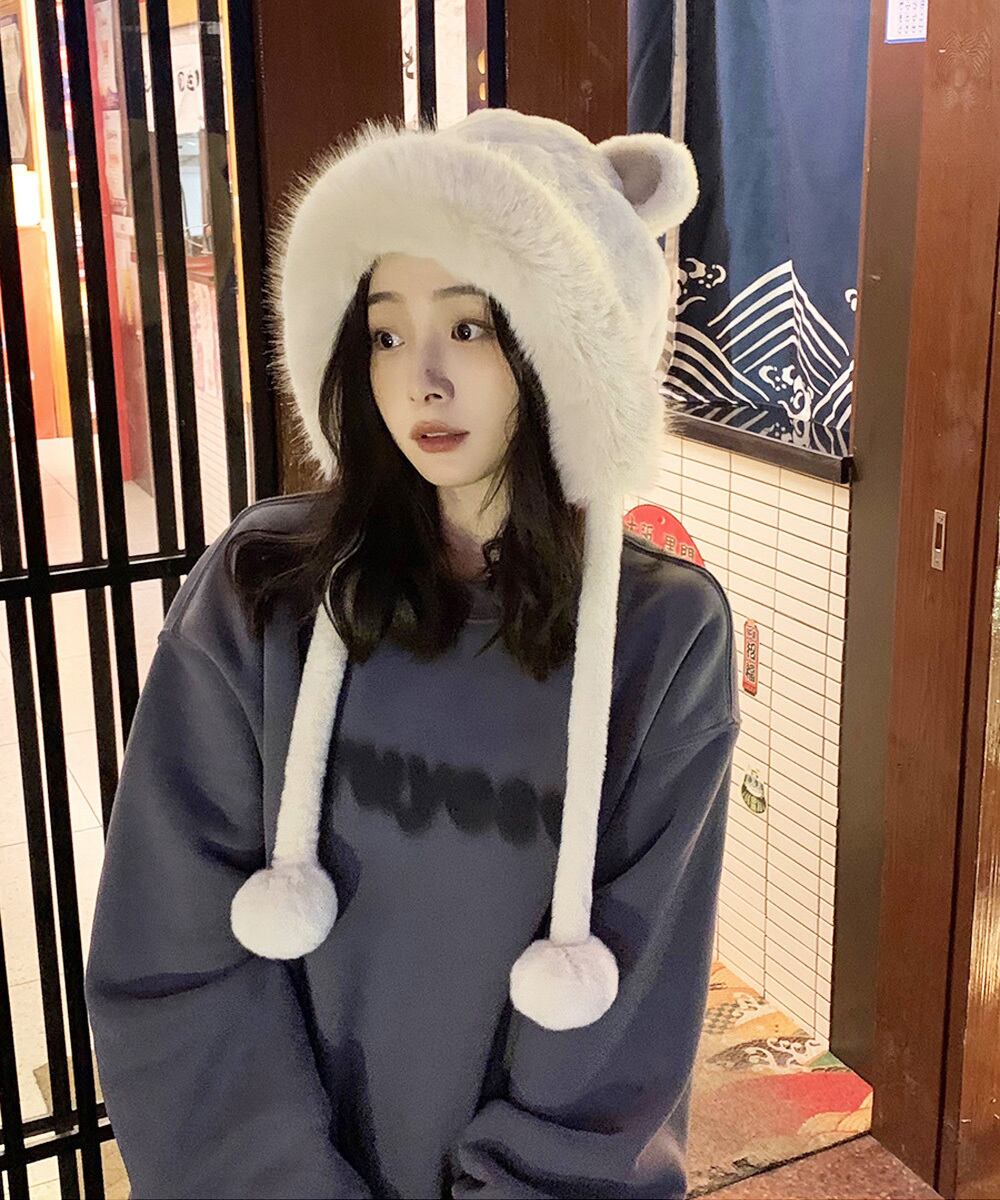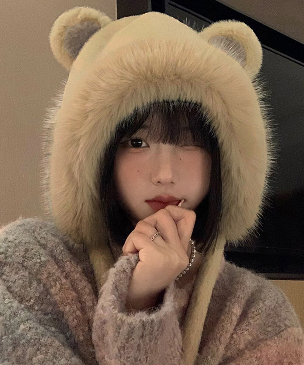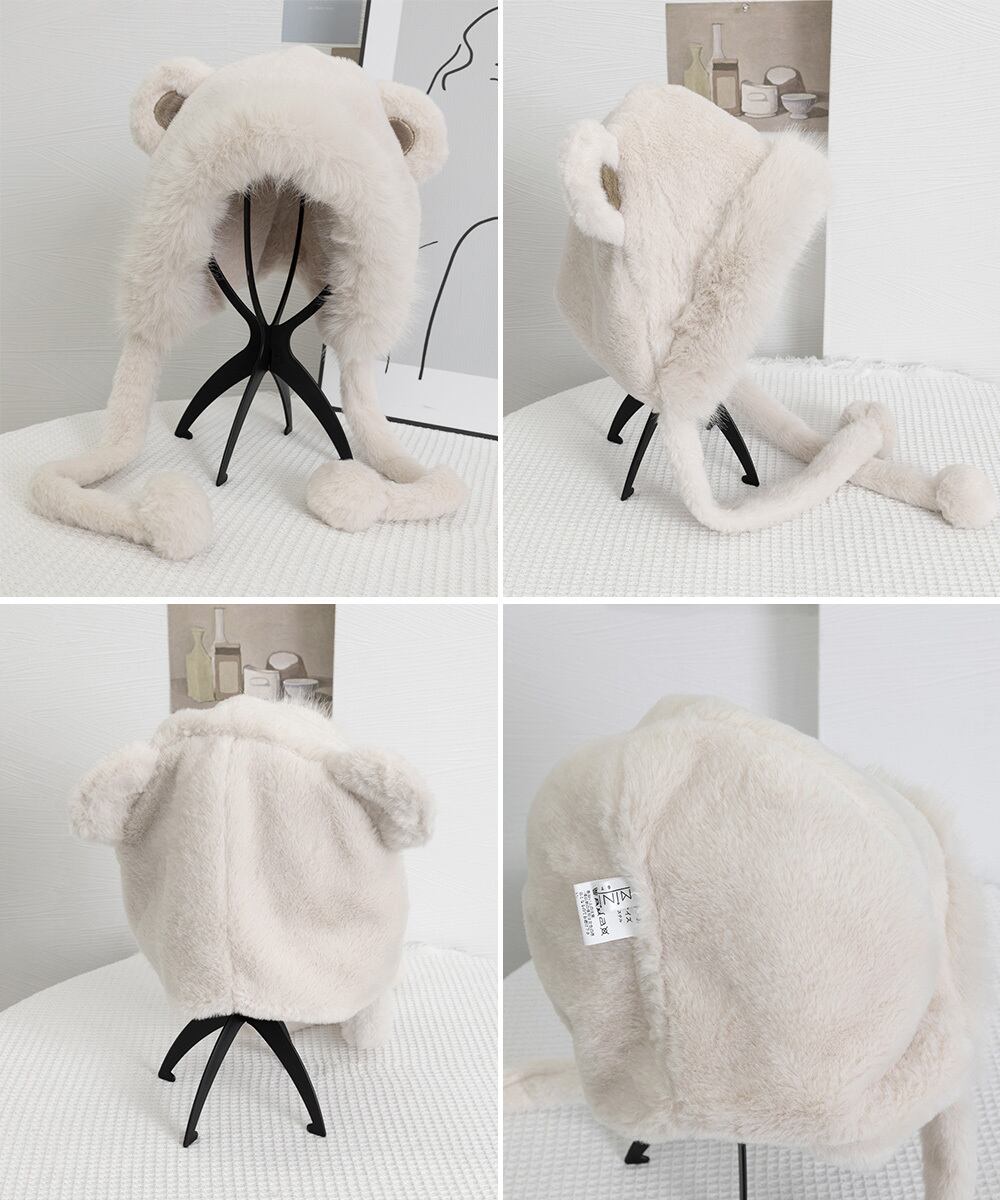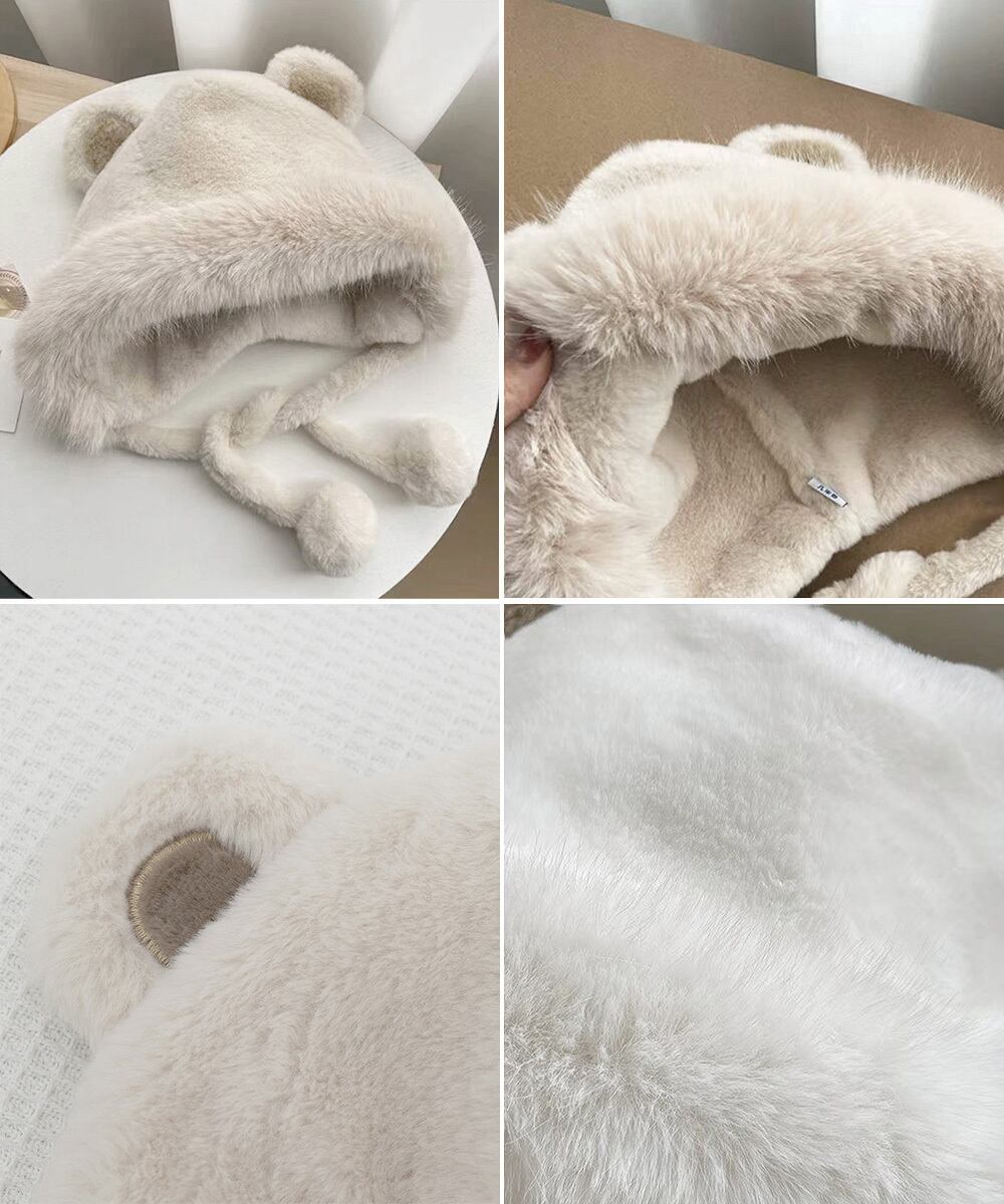 柔らかなファー素材が、寒い季節でもしっかりと頭を包み込み、温かさをキープします。